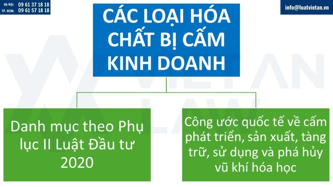Theo điểm b Khoản 1 Điều 6 Luật Đầu tư năm 2020, cấm các hoạt động đầu tư kinh doanh các loại hóa chất quy định tại Phụ lục II của Luật này. Theo đó, một số hóa chất cấm đầu tư kinh doanh như: