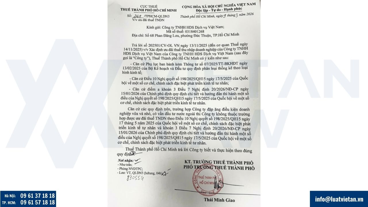 Trên thực tế, Cục Thuế TP. Hồ Chí Minh đã có văn bản trả lời cụ thể tại Công văn số 2169/TPHCM-QLDN3 ngày 09/03/2026, khẳng định rõ về trường hợp này. Theo đó, cơ quan thuế xác định: