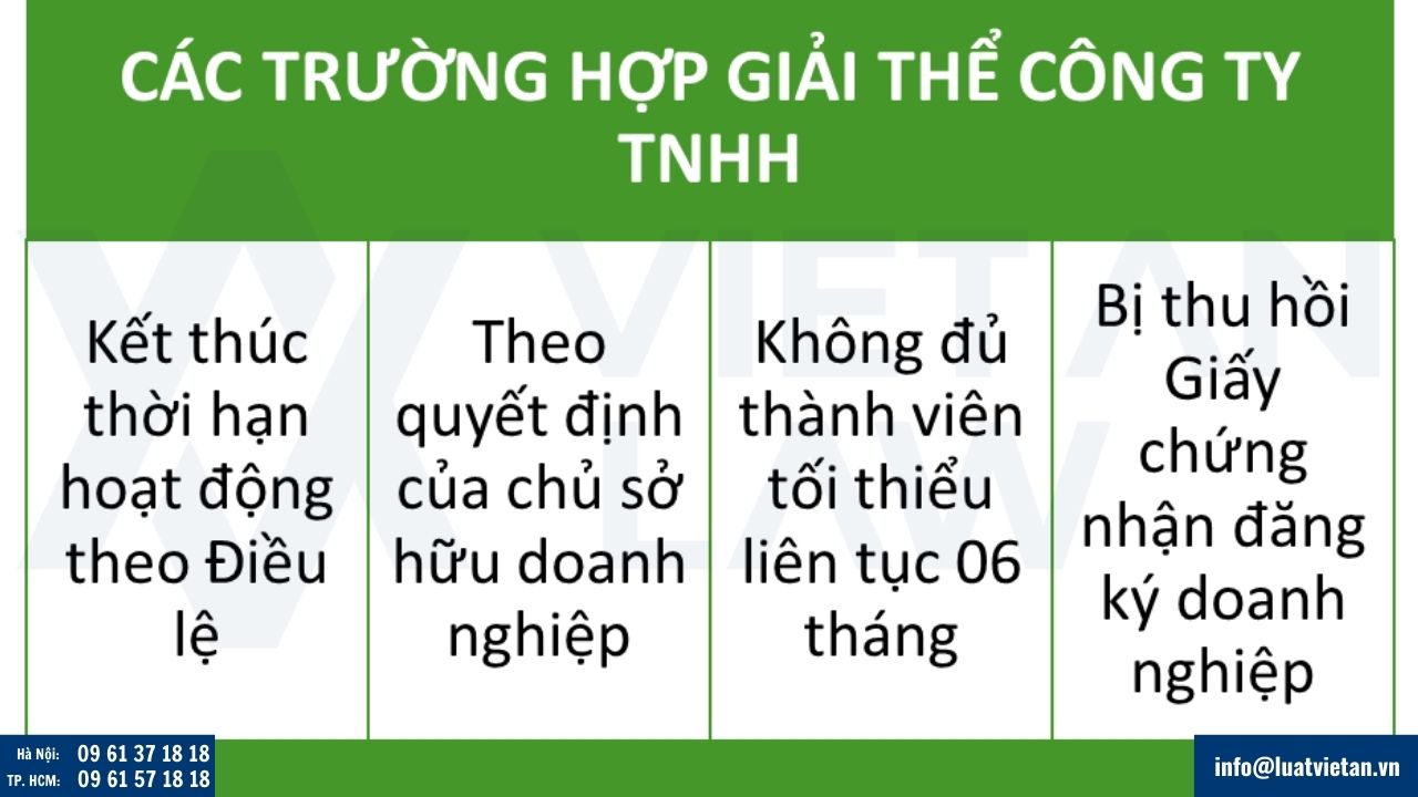 Việc giải thể Công ty TNHH sẽ làm chấm dứt sự tồn tại của doanh nghiệp cũng như chấm dứt tư cách pháp nhân trong các quan hệ pháp luật. Vì vậy, để đảm bảo quyền lợi cho những bên có quyền trong, pháp luật buộc phải đặt ra các điều kiện mà công ty phải đáp ứng thì mới có thể được phép giải thể. Cụ thể, tại khoản 2 Điều 207 Luật doanh nghiệp 2020 quy định về các điều kiện như sau:
