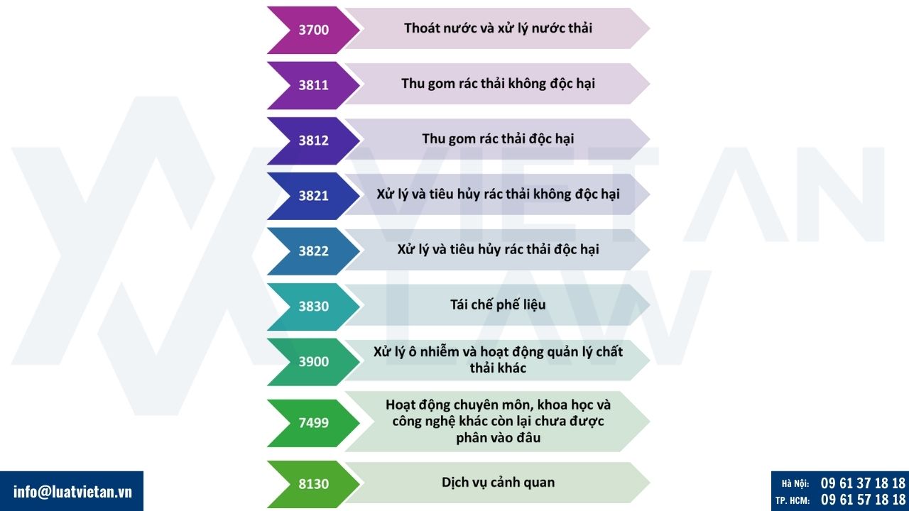 Theo đó, một số mã ngành nghề đăng ký của công ty môi trường mà quý khách hàng có thể tham khảo như sau: