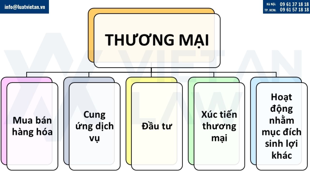 Theo quy định tại khoản 1 Điều 3 Luật Thương mại 2005 (sửa đổi, bổ sung năm 2017,2019), hoạt động thương mại được định nghĩa là hoạt động nhằm mục đích sinh lợi, bao gồm mua bán hàng hóa, cung ứng dịch vụ, đầu tư, xúc tiến thương mại và các hoạt động nhằm mục đích sinh lợi khác.