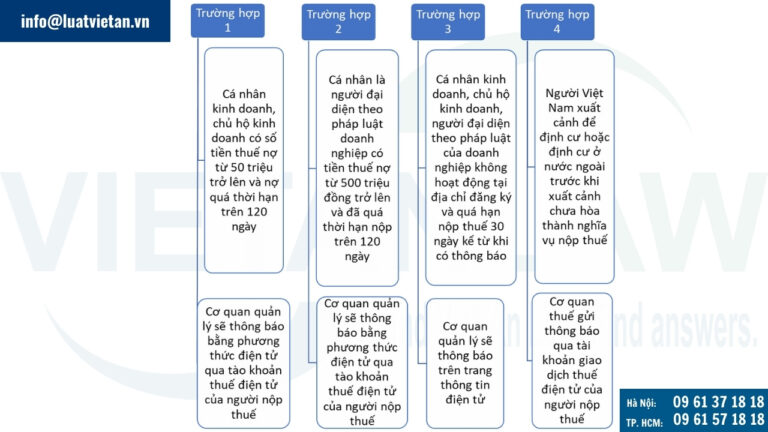 Đối với trường hợp này, cơ quan quản lý thuế quản lý trực tiếp người nộp thuế thông báo ngay cho cá nhân vi phạm trên về việc sẽ áp dụng biện pháp tạm hoãn xuất cảnh bằng phương thức điện tử qua tài khoản giao dịch thuế điện tử của người nộp thuế. Trường hợp không gửi được thông báo bằng phương thức điện tử thì cơ quan quản lý thuế thông báo trên trang thông tin điện tử của cơ quan quản lý thuế.