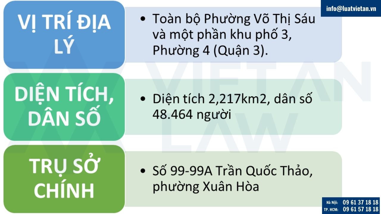Trụ sở UBND phường: 99–99A Trần Quốc Thảo (trụ sở UBND Quận 3 cũ) – lợi thế lớn về thủ tục hành chính;