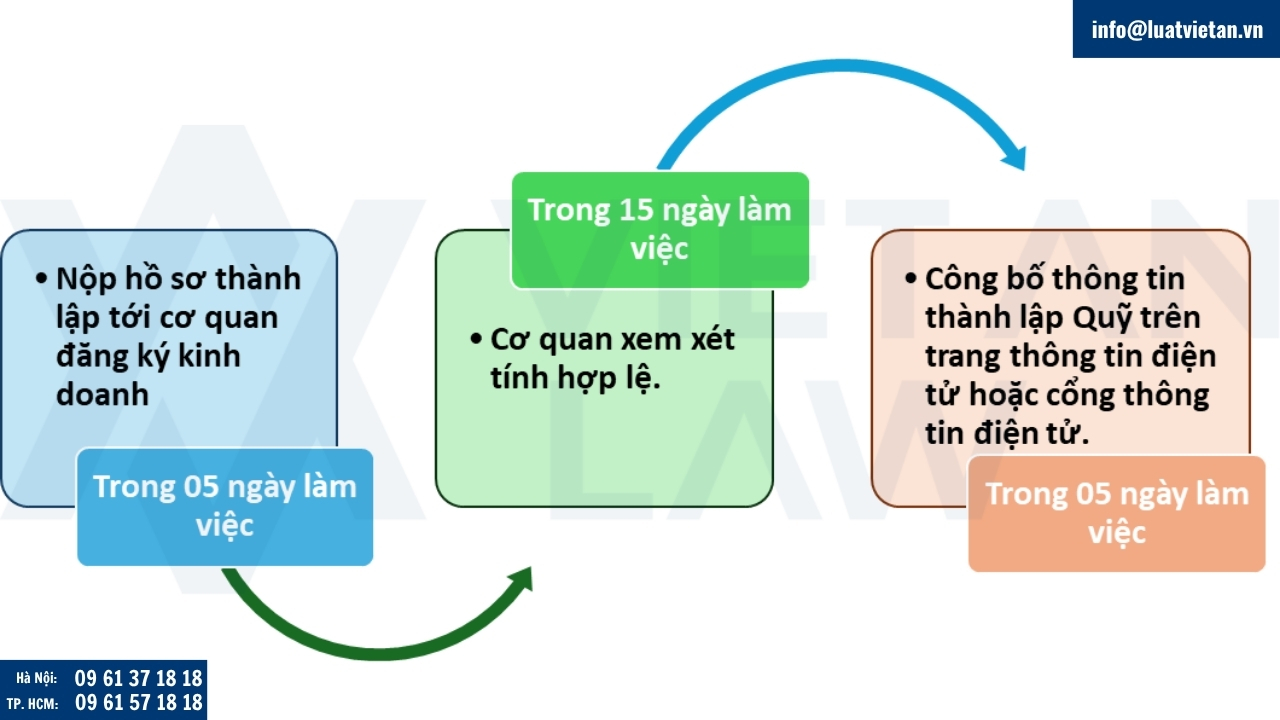 Trong thời hạn 05 ngày làm việc kể từ ngày thông báo thành lập quỹ hợp lệ, công ty thực hiện quản lý quỹ công bố thông tin về việc thành lập quỹ trên trang thông tin điện tử hoặc cổng thông tin điện tử của công ty thực hiện quản lý quỹ và gửi bản sao thông báo thành lập quỹ cho Bộ Kế hoạch và Đầu tư để công bố trên Cổng thông tin quốc gia hỗ trợ doanh nghiệp nhỏ và vừa. Quỹ chỉ được hoạt động sau khi thông tin của quỹ được công bố trên Cổng thông tin quốc gia hỗ trợ doanh nghiệp nhỏ và vừa.