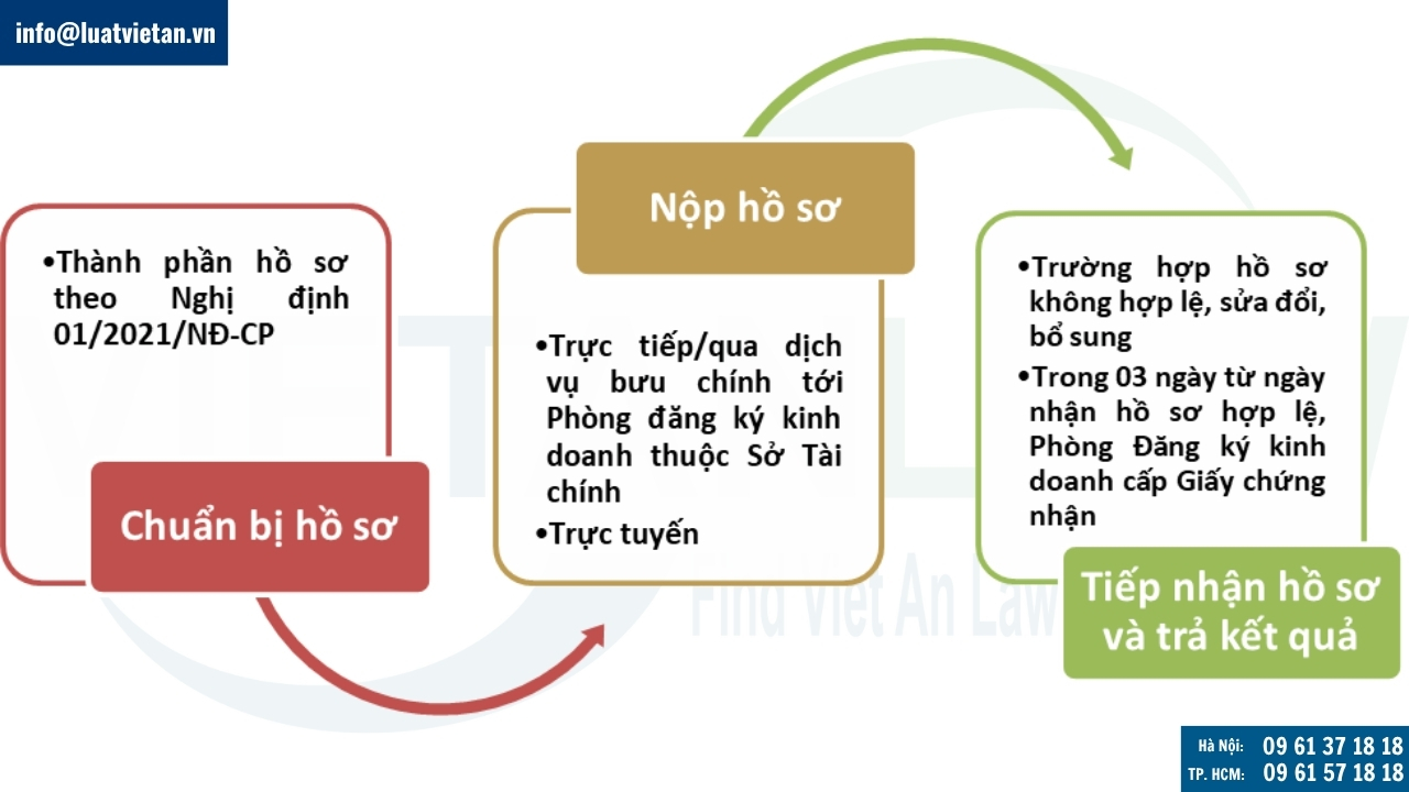 Sau khi tiếp nhận hồ sơ của doanh nghiệp, cơ quan đăng ký kinh doanh sẽ tiến hành thực hiện kiểm tra, xem xét hồ sơ sau đó trả kết quả cho doanh nghiệp.